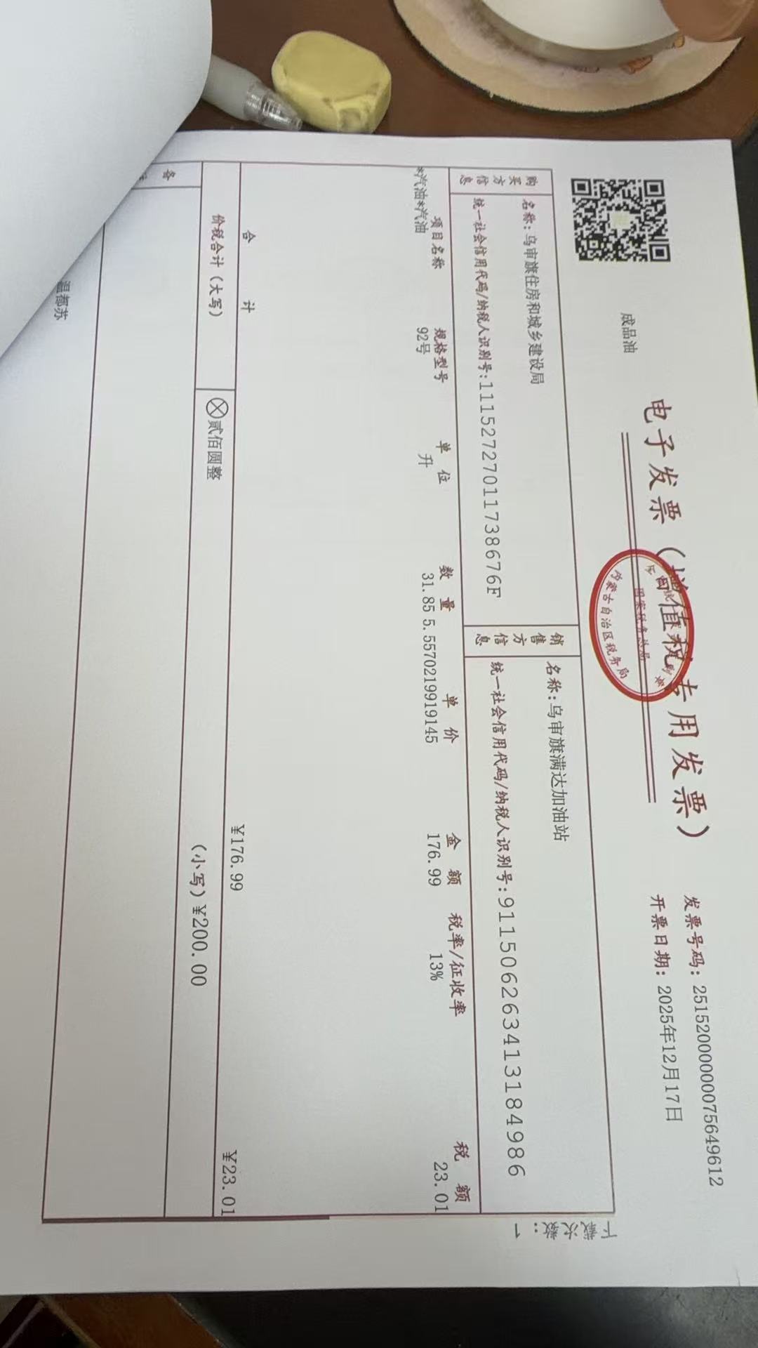 | 1 | 92號(hào)車用汽油 | 1(輛) | ¥200.00 | ¥200.00 | 92號(hào)車用汽油 |